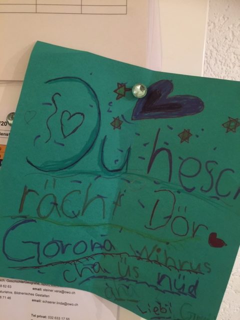 Wir hatten heute also einen Testlauf für die nächsten drei (!!!) Wochen. Klar ist, es müssen Verhandlungen geführt , Lösungen gefunden werden. Wie viel Struktur braucht es? Wie viel Mithilfe und Ordnung ist erwünscht. Wie viel Langeweile muss ausgehalten werden, wann ist die Kreativität und Eigeninitiative einzuschränken. Wie teilen wir die Zeit sinnvoll ein und natürlich darf auch Sinnloses Raum bekommen. Dies alles mal fünf und immer wieder von Neuem, denn keiner soll zu kurz kommen oder zumindest selbst den Entscheid zum Konsens fällen können. Ich bin gespannt,…..