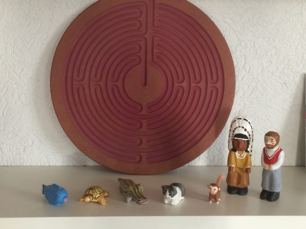 Um M. den Zugang zu neuen Verhaltensweisen im Urmensch zu ermöglichen und ihn dabei zu unterstützen, situativ angemessen zu reagieren, arbeiten wir in der Beratung mit Naturgeräuschen, dem Labyrinth, mit eigenen oder vorgegebenen Rythmen (Stimme, Trommeln, Rasseln) und Körperhaltungen. Sprachlich trainiere ich mit M. gezielt mit den Worten: “Geh geduckt….. und jetzt richte dich ganz auf.”
